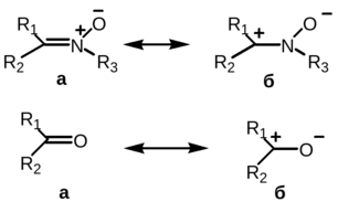 ермин “Нитрон” произведён от выражения “nitrogen ketone”, чтобы подчёркнуть сходство в химическом поведении нитронов и карбонильных соединений.11