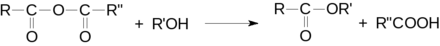 В качестве катализаторов применяют кислоты, кислоты Льюиса и основания, но наиболее часто – пиридин. Реакция циклических ангидридов приводит к моноэтерифицированным дикарбоновым кислотам, например: Этерификация кислот.
