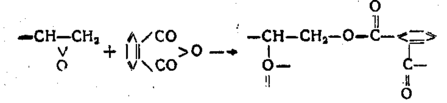 Недавно было найдено, что смола ЭД-5 при добавлении малеинового ангидрида до 35% полностью отверждается при 100° за 60 часов, все эпоксидные группы и весь малеиновый ангидрид вступают в реакцию (по инфракрасным спектрам). При более низких температурах даже за 200—300 час. не наблюдается полного исчезновения эпоксидных групп и малеинового ангидрида.