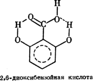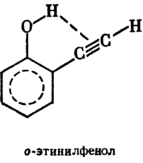 сли у о‑нитрофенола водородная связь – внутримолекулярная, то у n‑нитрофенола она межмолекулярная, так как в последнем веществе водород удален от кислорода нитрогруппы. Константа диссоциации 2, 6‑диоксибензойной кислоты при 25oC равна 5·10-2, для 3, 5‑диоксибензойной кислоты при 25oC она в 550 раз меньше. Это объясняется тем, что в 3, 5‑диоксибензойной кислоте внутримолекулярная водородная связь почти не проявляется, что усиливает связь O—H в карбоксильной группе. Молекула о‑этинилфенола особенно интересна тем, что в ней водородная связь образуется за счет π‑электронов тройной связи.