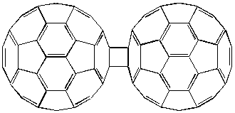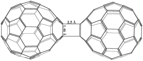аряду с димерами образуются и другие олигомеры, включая (C60)20. Интересно, что “межфуллереновые” углерод-углеродные связи имеют исключительную длину - более 2-х Е, а сферы оказываются слегка вытянутыми по отношению друг к другу (Рисунок 5). В