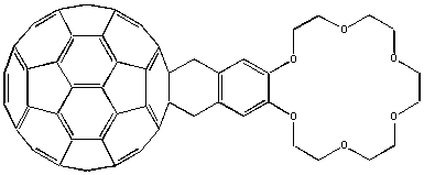 астворимость другого аддукта, полученного с использованием эфира бензо[18]краун-6, в полярных протонных растворителях, сильно зависит от концентрации ионов K+; это приводит к выводу, что эфирная группировка практически не взаимодействует с фуллереновой частью молекулы: