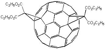 тех же условиях возможно образование бис-аддукта, то есть вещества, в составе которого содержатся два циклопропановых кольца. Для фуллерена-60 изомеров такого вида будет восемь, из которых преобладает следующий: