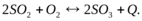 Необходимость использования катализатора в этой обратимой реакции обусловлена тем, что хороший выход SO3 (т. е. смещение равновесия вправо) можно получить только при понижении температуры, однако при низких температурах очень сильно падает скорость протекания реакции.