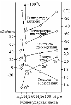 Рис. 3. Свойства водородных соединений элементов VI группы.