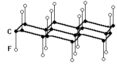 Действие на графит смеси фтора с избытком фтористого водорода при обычных условиях ведёт к увеличению расстояния между слоями до 540 пм и образованию чёрного вещества предельного состава С4F, также содержащего ковалентные связи С-F с расстоянием F-F 490 пм. Сами углеродистые “паркеты” при этом не изменяются, но становятся расположенными точно друг над другом (структура АААА...). Этот фторид проводит электрический ток, однако, примерно в 1000 раз хуже графита. Химически он очень устойчив, но при нагревании уже выше 100 °С начинает разлагаться.