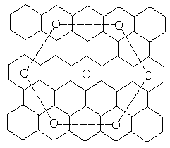 Аддукт состава С8К образуется экзотермически (33 кДж/моль) при контакте графита с избытком жидкого или парообразного калия. Он имеет вид бронзы и обладает более высокой электропроводностью, чем исходный графит. Внедрение атомов калия не искажает “паркеты”, а вызывает их смещение в точно одинаковые позиции (структура АААА...). Расстояние от одного из них до другого становится при этом равным 540 пм, а каждый атом калия располагается между центрами двух шестиугольников, имея соседними 12 атомов С. Схема координации атомов в C8K показана на рис. 5. Аналогично калию ведут себя рубидий и цезий.