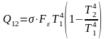 Поэтому количество тепла Q12, переданное при лучистом теплообмене от тела 1 к телу 2, равно:
