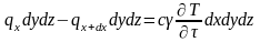 , то элементарный параллелепипед будет нагреваться, тогда разница между этими потоками тепла по закону сохранения энергии равна теплу, аккумулированному данным элементарным параллелепипедом, т. е.