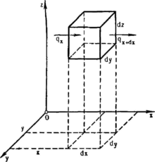 Рис 1.3. Поток тепла через элементарный объём