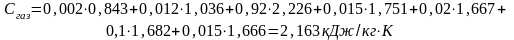 Теплоемкость попутных газов рассчитаем по правилу смешения средних теплоемкостей компонентов, приведенных в таб. 15 [7]: