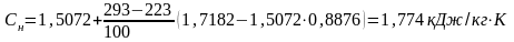 | Средняя теплоемкость, кДж/(кгК) | 0,576 | 1,416 | 0,766 | 1,181 | 1,320 | 1,332 |