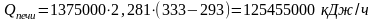 Рассчитаем тепло, которое передается в печи, если температура нефти на выходе 333К: