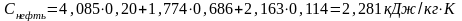 Так как нефть приходит с 20%-ой обводненостью и содержит 11,4% попутного газа, поэтому рассчитаем теплоемкость приходящей нефти по правилу смешения: