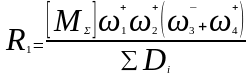 Используем алгоритмы Яблонского (64) и Мезона (62). Для обоих уравнений нужны величины Di. Запишем для каждой вершины i произведения сумм весов стадий, выходящих из всех других вершин КГ j i. Перемножим скобки и исключим из полученных сумм произведения стадий, образующих цикл, включая произведения