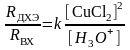 Зависимость отношения RДХЭ/RВХ от [CuCl2] при постоянных остальных параметрах системы описывается уравнением (16)