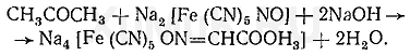 Ацетон с нитропруссидом натрия в щелочной среде дает интенсивно-красную окраску. При подкислении уксусной кислотой окраска переходит в красно-фиолетовую: