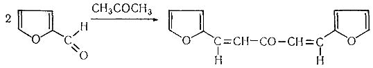 3. Реакция с фурфуролом. Эта реакция основывается на способности ацетона конденсироваться с фурфуролом и некоторыми другими альдегидами (ванилин, салициловый альдегид) с образованием окрашенных соединений: