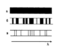 Эмиссионные спектры делятся на сплошные, полосатые, линейчатые (рис.2.2.3). Сплошные (или непрерывные) спектры содержат все длины волн в определённом интервале.