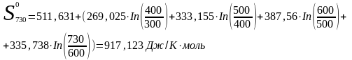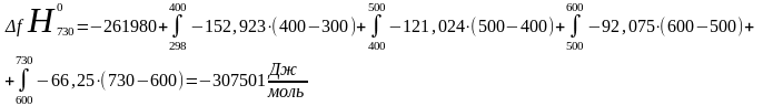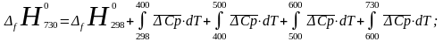 -энтальпия образования вещества при 730К;