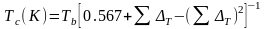 Для расчета, выбираем парциальные вклады для каждого вещества из таблицы составляющих для определения критических свойств по методу Лидерсена.