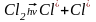 Эта реакция протекает через отдельные элементарные процессы. Прежде всего, за счёт поглощения кванта энергии УФ лучей (или температуры) молекула