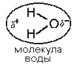 Атом кислорода сильнее притягивает электроны, чем атомы водорода, поэтому электронное облако смещено в сторону кислорода. Степень полярности определяется величиной частичных зарядов и расстоянием между центрами тяжести этих зарядов. Таким образом, молекула воды является диполем.