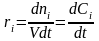 Если ri одинакова по всему объему и V = const (закрытая система), то ni V, и дифференцирование по V заменяется делением на V:
