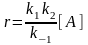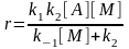 При низких концентрациях М лимитирующей становится первая стадия в прямом направлении с уравнением 2го порядка. Вероятность соударений двух молекул в бимолекулярной реакции или фактор соударений