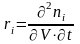 Скорость реакции. Изменение количества молей i-того участника стадии (∆ni) в результате химической реакции определяется скоростью ri образования или расходования ni, временем реакции t и объемом V: ni = (ri, t, V). Поэтому скорость реакции ri есть производная второго порядка от ni по V и t: