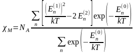 Це і є рівняння Ван-Флека – основне в магнетохімії, пов’язуюче магнітні властивості з будовою молекул. Тут NA – число Авогадро, k – постійна Больцмана. З деякими крайніми випадками його ми вже зустрічалися вище. Якщо Е(0) = 0, а Е(2) можна знехтувати, то ми одержуємо в результаті закон Кюрі, але в більш строгій формі: