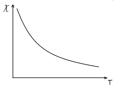 Залежність магнітної сприйнятливості різних речовин від температури. Магнітна сприйнятливість різних типів магнітних матеріалів відрізняється температурною залежністю, а також своїми абсолютними значеннями. Для парамагнітних речовин виконується закон Кюрі, згідно з яким магнітна сприйнятливість обернено пропорційна температурі (мал. ).