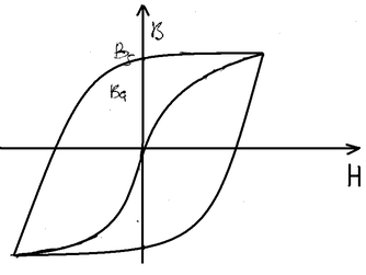 Повний цикл перемагнічування феромагнітних матеріалів описується петлею гістерезису (мал. ): магнітна індукція збільшується по кривій початкового намагнічування (0а) і досягає відповідного максимального значення Ва. Якщо потім струм і напруженість поля зменшуються, то і магнітна індукція зменшується. При відповідних значеннях напруженості магнітна індукція трохи більше, ніж при збільшенні напруженості. Крива зміни магнітної індукції (ділянка аб на мал. ) розташовується вище кривої початкового намагнічування. При нульових значеннях струму і напруженості поля магнітна індукція має деяке значення Вr, назване залишковою індукцією.
