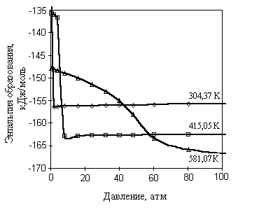 Р и с. 1.5. Зависимость энтальпии образования циклогексана от давления