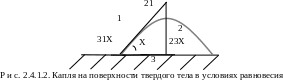 На рис. 2.4.1.2 показана капля на поверхности твердого тела в условиях равновесия.