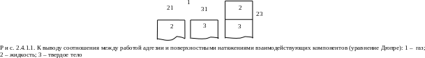 Чтобы получить соотношение между работой адгезии и поверхностным натяжением взаимодействующих компонентов, представим себе две конденсированные фазы 2 и 3, имеющие поверхность на границе с воздухом 1, равную единице площади (рис. 2.4.1.1).