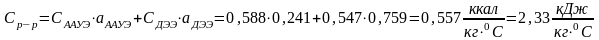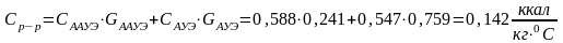 Удельная теплоемкость эфирного раствора рассчитывается по формуле: