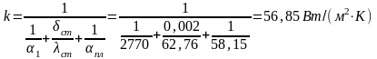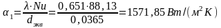 Отсюда находим коэффициент теплоотдачи от горячей воды к стенке α1: