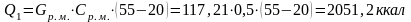 Тепло, которое пошло на охлаждение (с 550С до 300С):