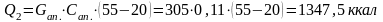 - тепловой эффект теплообменника, рассчитываем по упрощенной формуле: