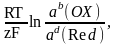 Зависимость редокс-потенциала E(OX/Red) от концентрации и температуры передается уравнением Нернста: