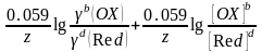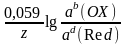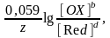 При подстановке в уравнение Нернста значений R, F и T = 298 К, а также переходе к десятичному логарифму, получим