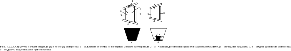 Основными факторами, определяющих структуру и реологические свойства дисперсной системы, является концентрация частиц в объемных долях и потенциал парного взаимодействия частиц. График зависимости энергии взаимодействия двух частиц от расстояния между ними называется потенциальной кривой (рис. 4.2.2.3). Основными параметрами потенциальной кривой является высота потенциального барьера Частицы полностью сохраняют полную свободу перемещения и не имеют структуры. Такие системы является ньютоновскими и вязкость их подчиняется уравнениям Эйнштейна коагулирующей системы, возникающей при коагуляции частиц на расстояниях, отвечающих вторичному минимуму на потенциальной кривой (h0). Коагуляция в первичном минимуме приводит к образованию конденсированных кристаллических структур. Чтобы представить упрощенно процесс образования структуры в дисперсных системах, рассмотрим особенности седиментационных объемов, отличающих агрегативно устойчивые и неустойчивые системы. В Твердообразные дисперсные системы, внутри которых распределена жидкость, в коллоидной химии называют гелями. В России за гелями, образованными из растворов органических высокомолекулярных систем (ВМС), установилось название студней. К гелям можно отнести торф, уголь, древесину, бумагу, адсорбенты, кожу, зерно, и другие. Эластичными свойствами отличаются студни с коагуляционной структурой, например, желатин, тесто и другие. Также студни образуются в растворах линейных и разветвленных высокомолекулярных систем (ВМС) в не очень хороших растворителях. В хороших растворителях студни не образуются. Студни с коагуляционной структурой могут разрушаться с повышением температуры и переходить в состояние раствора. Этот процесс называется плавлением. Студни конденсированного типа образуются при трехмерной полимеризации в растворе или в результате набухания пространственного полимера. Химические связи между макромолекулами не разрушаются при нагревании, поэтому такие студни не плавятся, типичным примером таких студней ионообменные смолы. Для гелей характерен процесс старения. Он заключается в постепенном упрочнении структуры, ее сжатии и высвобождении части жидкости из структуры. Это явление называется синерезисом. Переход коагуляционной структуры в конденсационную - пример синерезиса. Синерезис заключается в сжатии каркаса студня или геля (рис. 4.2.2.4), изменении взаимного расположения частиц и выдавливании преимущественно свободной жидкости. Вследствие синерезиса стуктура сжимается, сохраняя первоначальную форму. Жидкость, которая выделяется при синерезисе, помимо свободной может включать часть связанной воды, в которой попадаются даже частицы дисперсной фазы. Так, сыворотка, выделяющаяся после образования простокваши, является слабоконцентрированным золем. Для студней ВМС процесс синерезиса может быть обратимым. Иногда достаточно простого нагревания, чтобы вернуть систему в первоначальное (до синерезиса) состояние. Широкий спектр структурно-механических свойств отражает многообразие природных и синтетических тел, большинство из которых являются дисперсными системами. Б Когда коллоидные частицы подходят очень близко друг к другу, их диффузные слои перекрываются и взаимодействуют. Это взаимодействие совершается в тонкой прослойке диспер