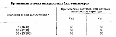 Критические составы начала выделения кристаллической фазы ПЭО для каждого ряда блок-сополимеров приведены в табл. 2. С увеличением молекулярной массы ПАСО-блока они сдвигаются в сторону меньшего содержания ПЭО.
