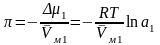 Осмотическое давление в растворе или золе описывается следующим строгим термодинамическим соотношением: