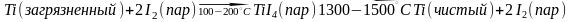 Иодидный метод относится к термическому разложению. Исходный металл в виде порошка нагревается до 100-200˚С с небольшим количеством иода в герметическом аппарате. В аппарате натянуты титановые нити, нагреваемые электрическим током до 1300-1500˚С. Титан (но не примеси) образует с иодом летучий иодид TiI4, который разлагается на раскаленных нитях. Выделяющийся чистый титан осаждается на них, а иод образует с исходным металлом новые порции иодида; процесс идет непрерывно до переноса всего металла на титановые нити: