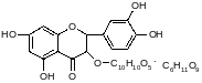 При действии кислот рутин разлагается на кверцетин (I), глюкозу (II) и рамнозу (III):