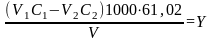 де V1\ — об'єм розчину соляної кислоти, добавлений до проби води, см3; С1 — концентрація розчину соляної кислоти, добавленої до проби води, моль-екв/дм3; V2 — об'єм стандартного розчину бури, витрачений на титрування залишку соляної кислоти, см3; С2 — концентрація стандартного розчину бури, витраченого на титрування залишку соляної кислоти, моль-екв/дм3; V— об'єм проби води, см; 61,02 — молярна маса еквівалента гідрокарбонат-іонів.