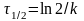 - час напіврозпаду, тобто час, протягом якого прореагує половина речовини.