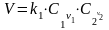 Відповідно до закону діючих мас швидкість реакції V пропорційна добуткові концентрацій реагуючих речовин у ступенях, рівних їхнім стехіометричним коефіцієнтам у рівнянні швидкості реакції. Для елементарної реакції (1), що протікає зліва праворуч (пряма реакція), швидкість реакції V виражається рівнянням